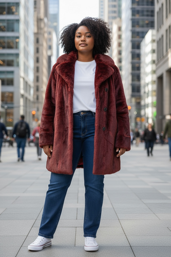 Blood Red Furry Coat, size L #365