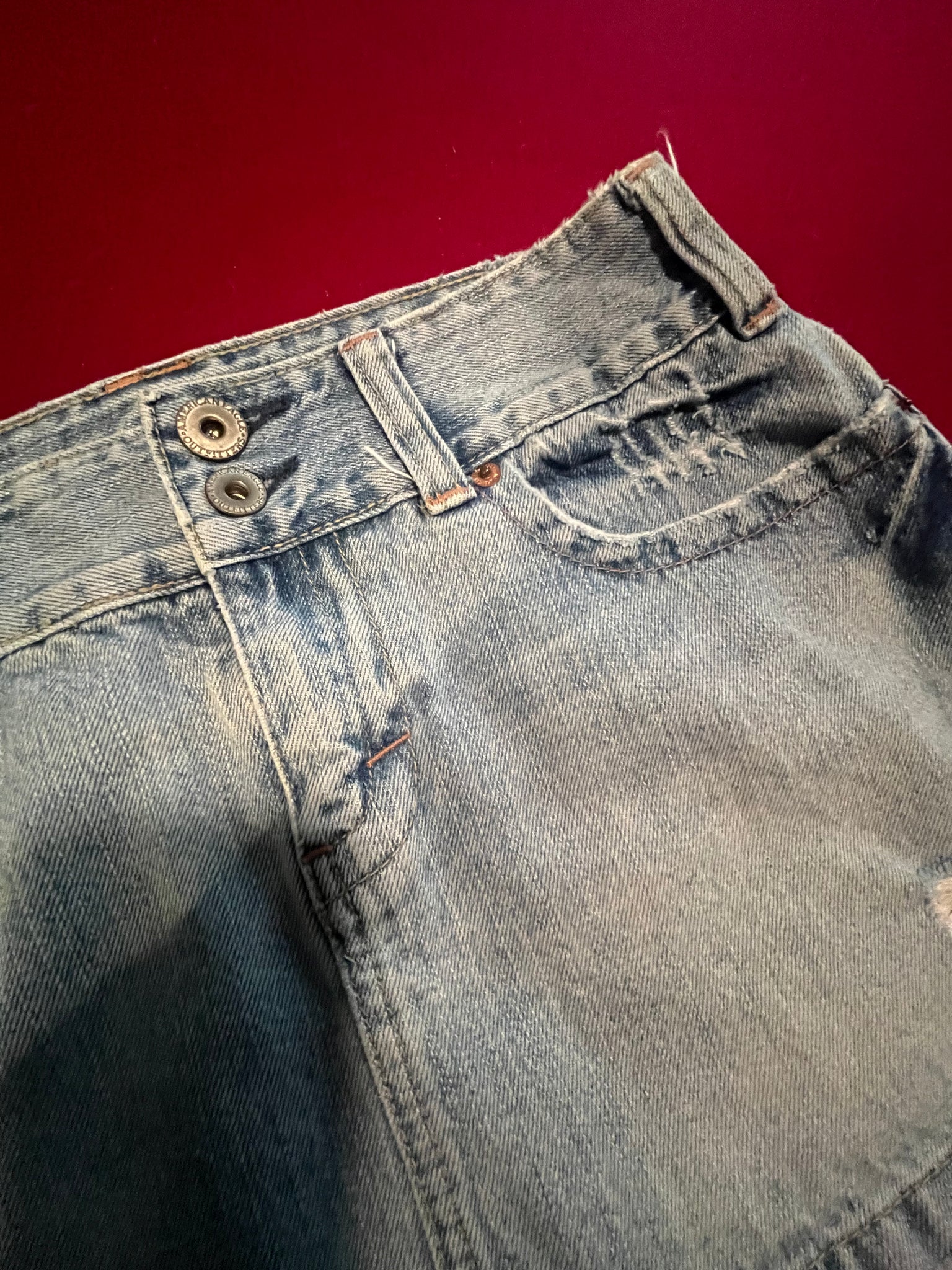 American Eagle Jean mini skirt, size 8, slight distress on front, very short